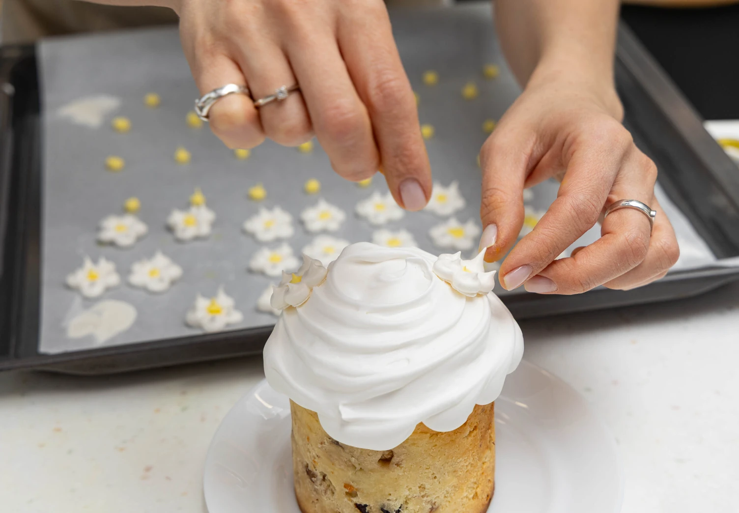 Декор для кулича «Ромашки из безе»