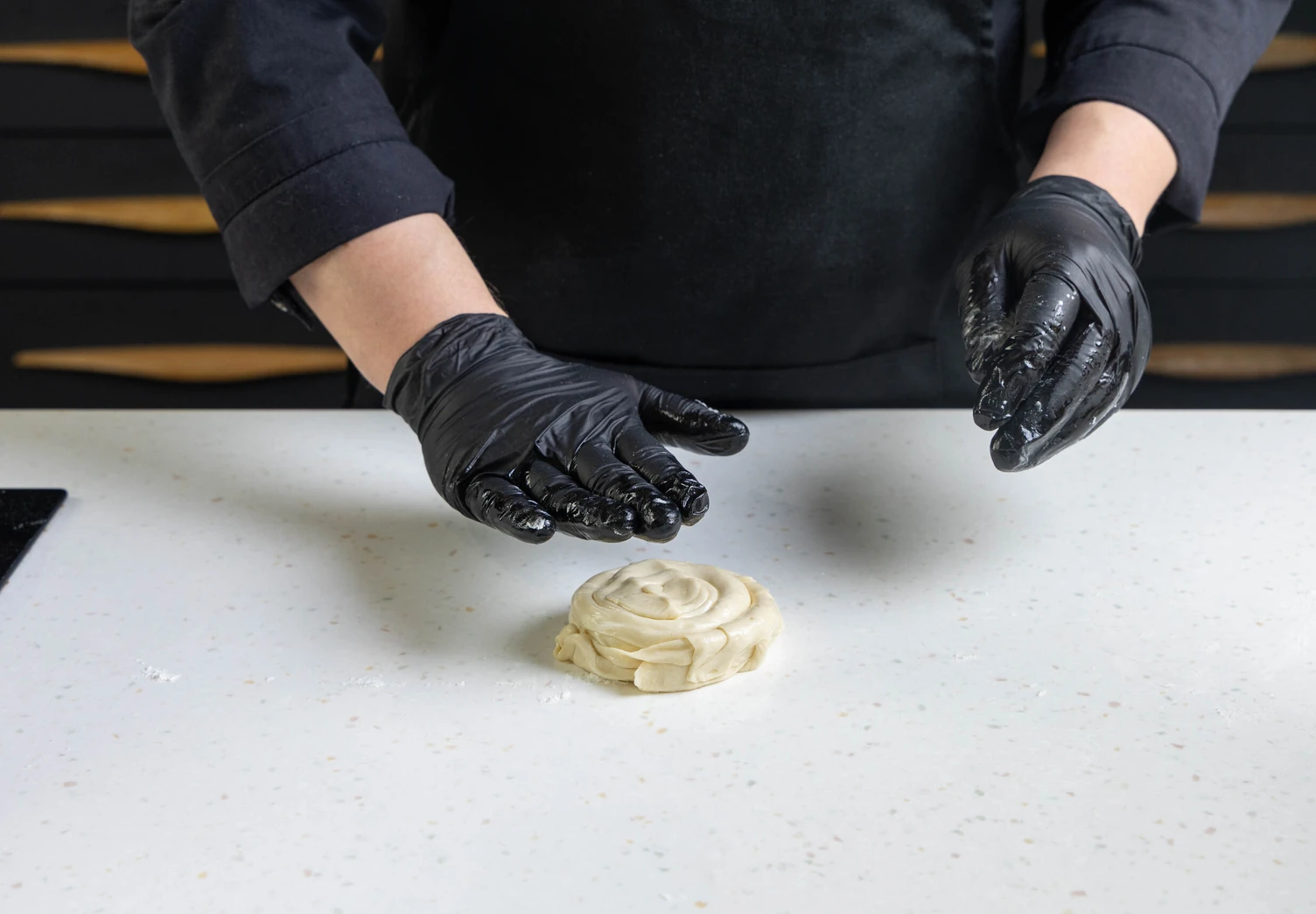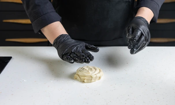 Полученный круг аккуратно сверните в тонкий рулет, а его затем — в улитку.