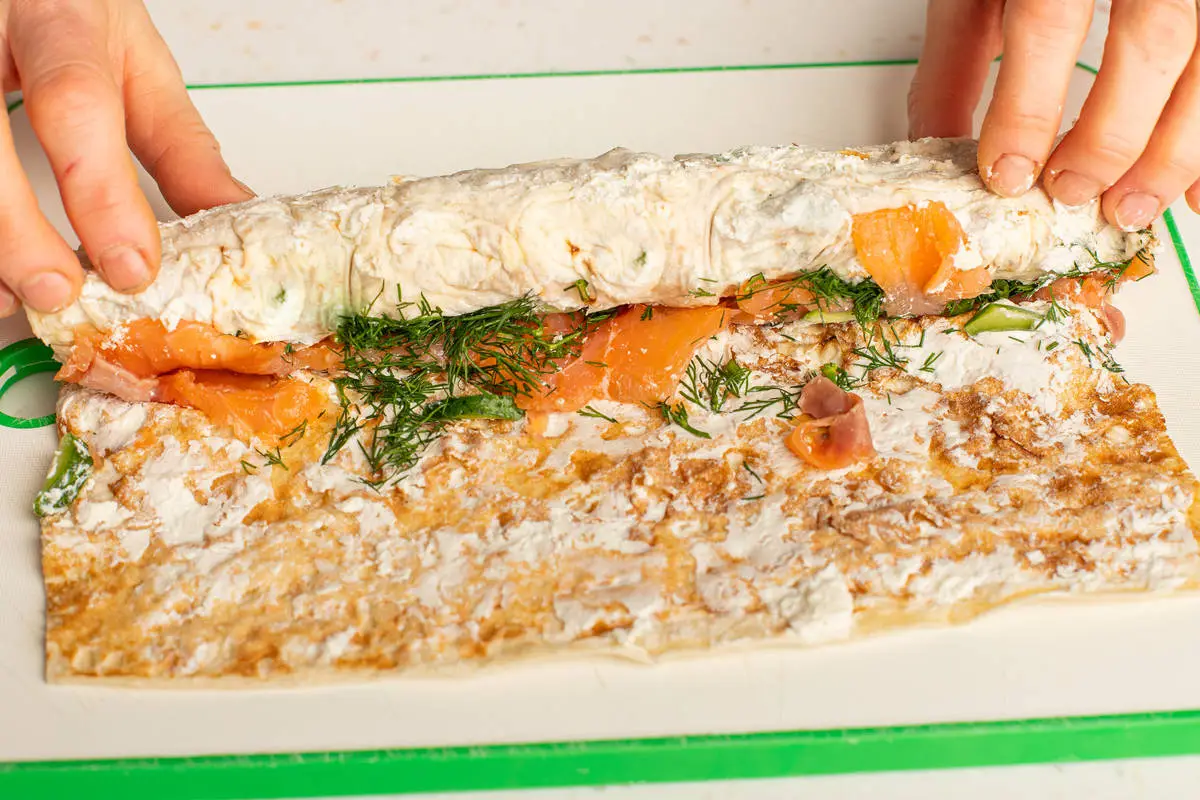 Рулет из лаваша с красной рыбой и сыром — это очень вкусно!