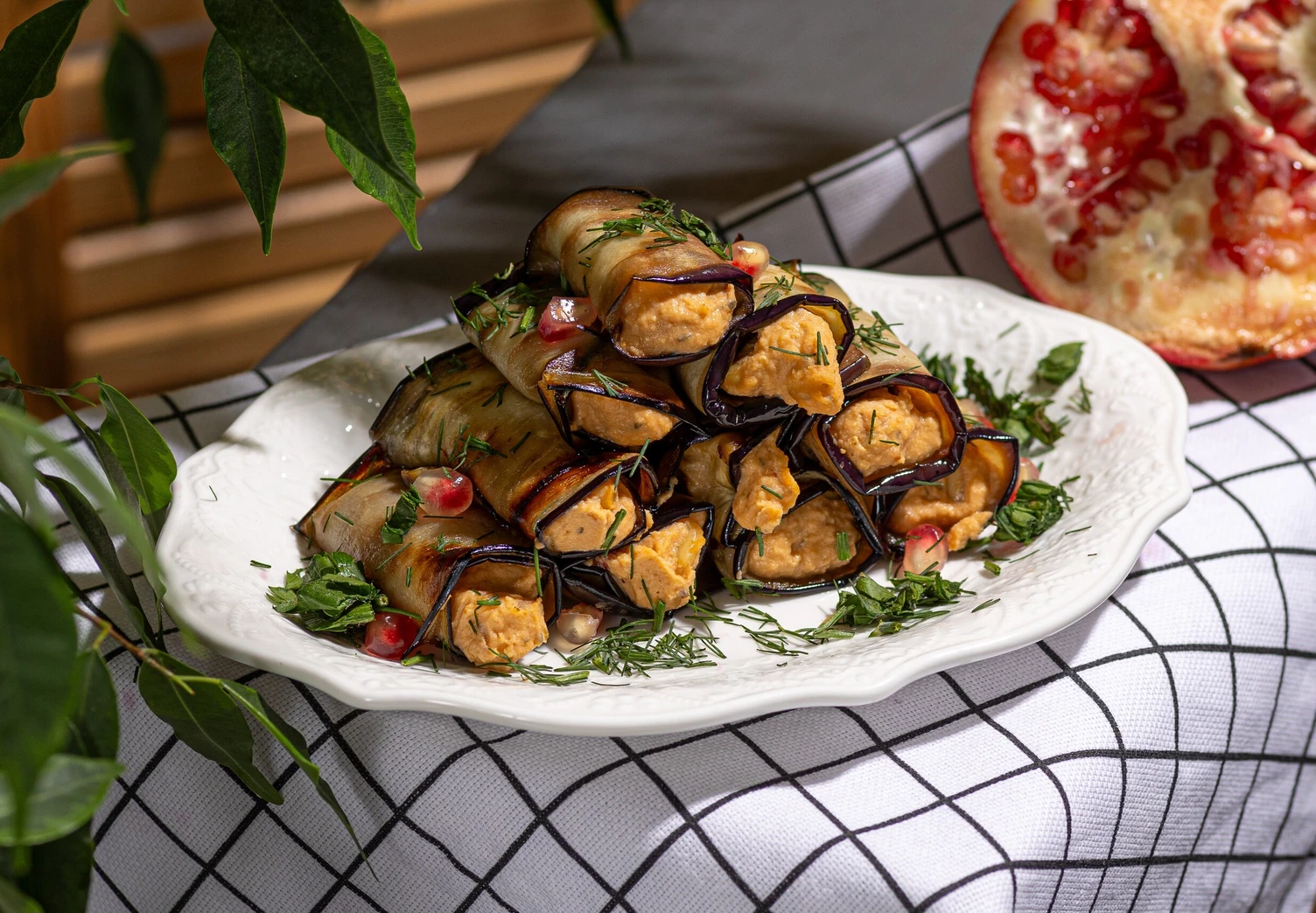 Любимые всеми рулетики из баклажанов в веганской интерпретации! Делаем хумус с нуля или берём готовый — в любом случае результат вас восхитит.