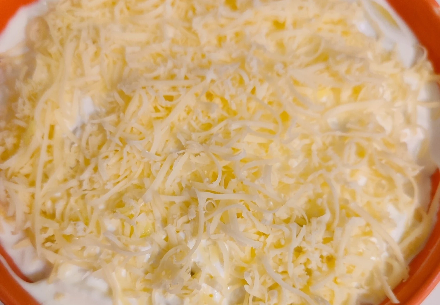 Залейте блюдо сметаной, посыпьте тёртым сыром.