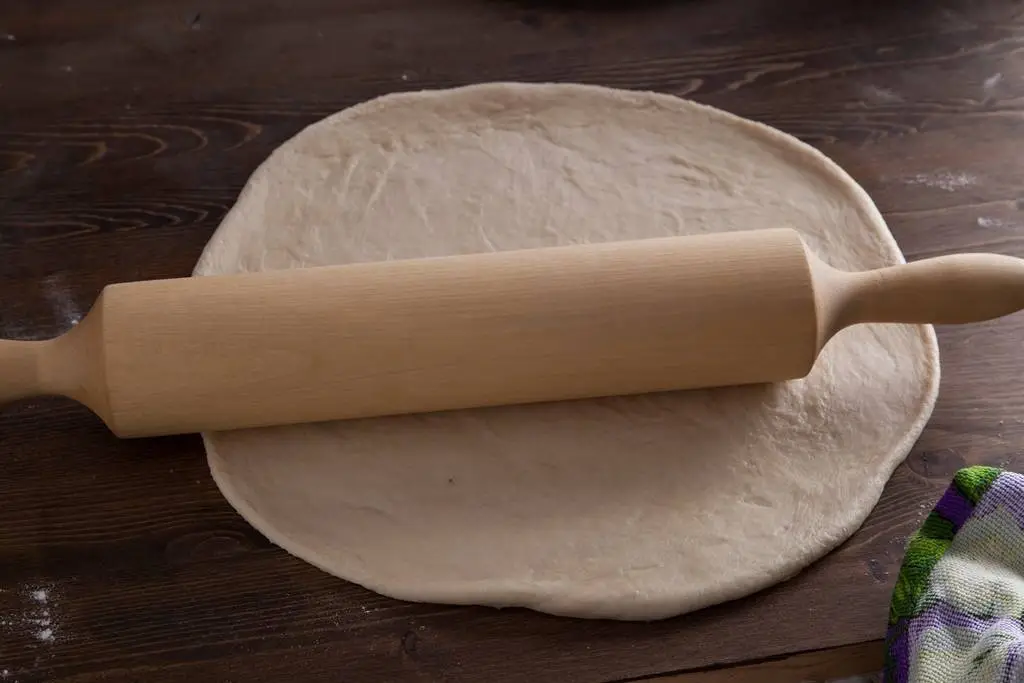 Размороженное тесто раскатайте и выложите в форму для выпечки.