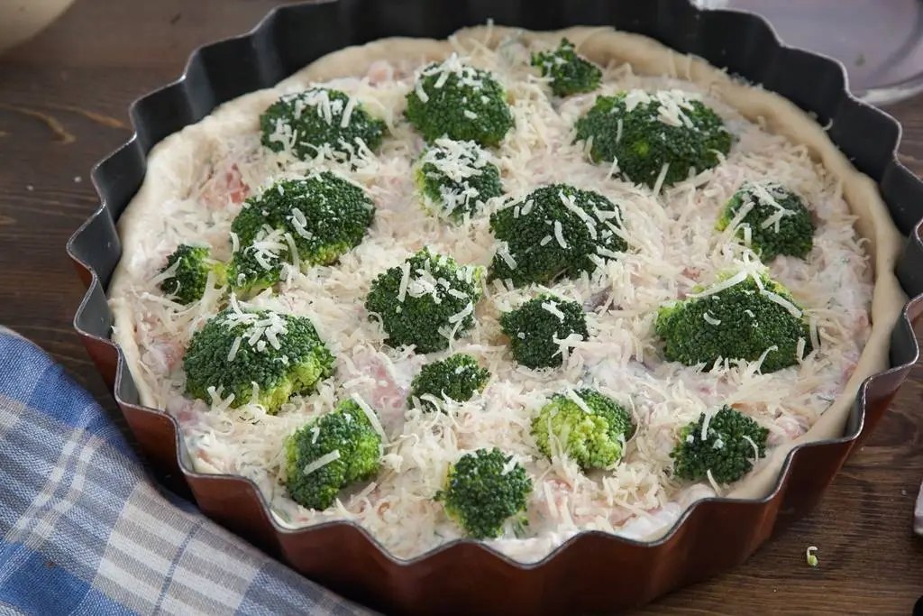 Брокколи разделите на соцветия и опустите на несколько секунд в кипящую воду, выньте, дайте стечь воде. Разложите соцветия брокколи, утапливая в рыбную начинку, посыпьте сверху тертым сыром. Выпекайте пирог в разогретой до 180С духовке около получаса (до румяной корочки).