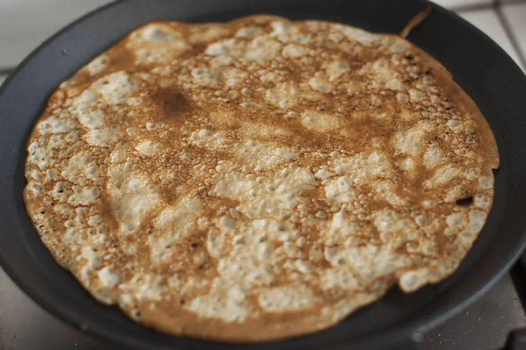 Пеките блины как обычно, на горячей сковороде, смазанной растительным маслом.