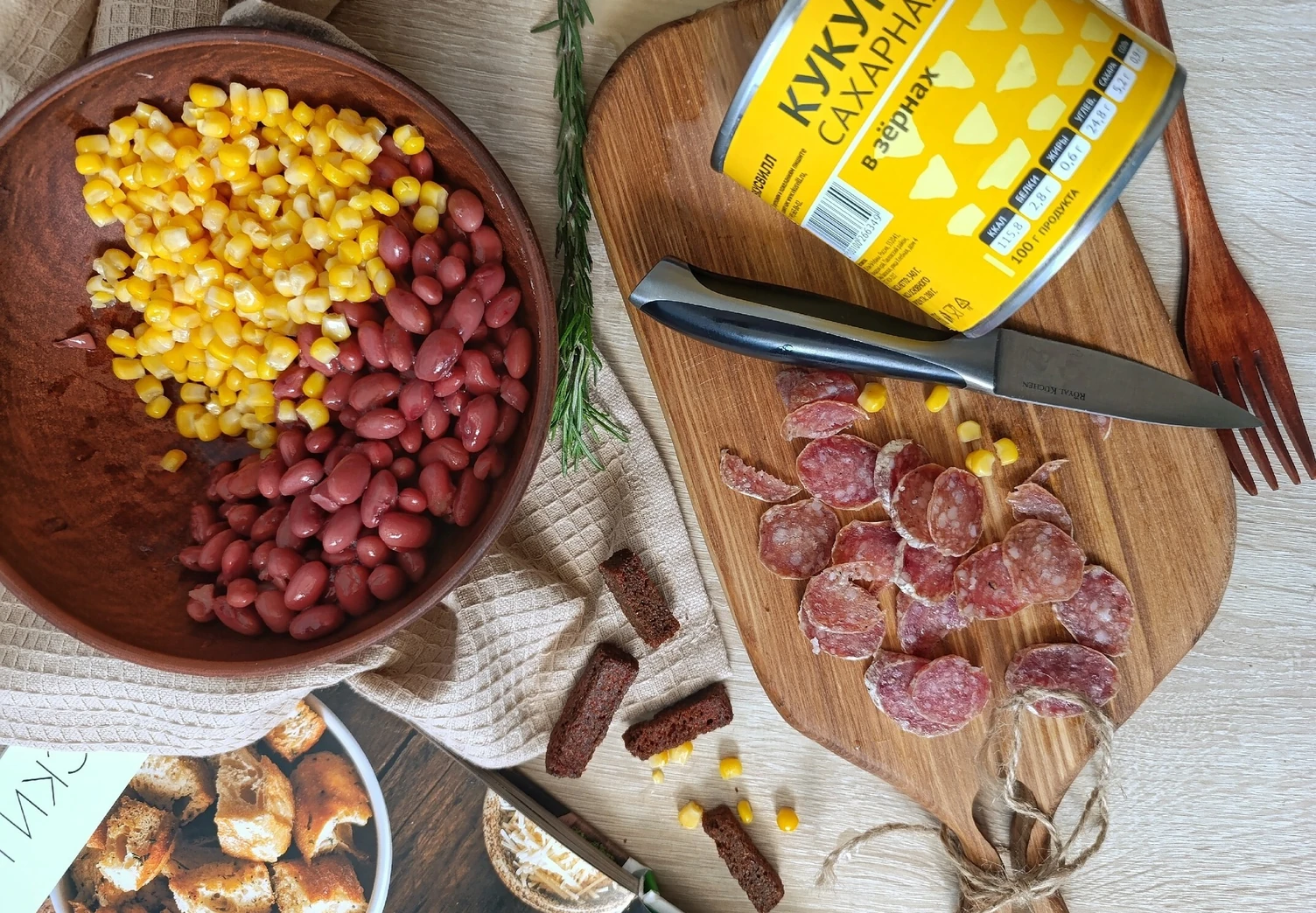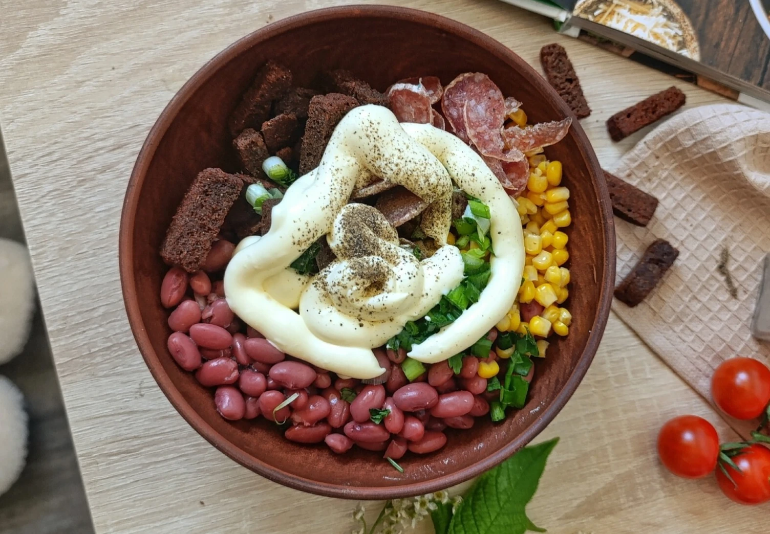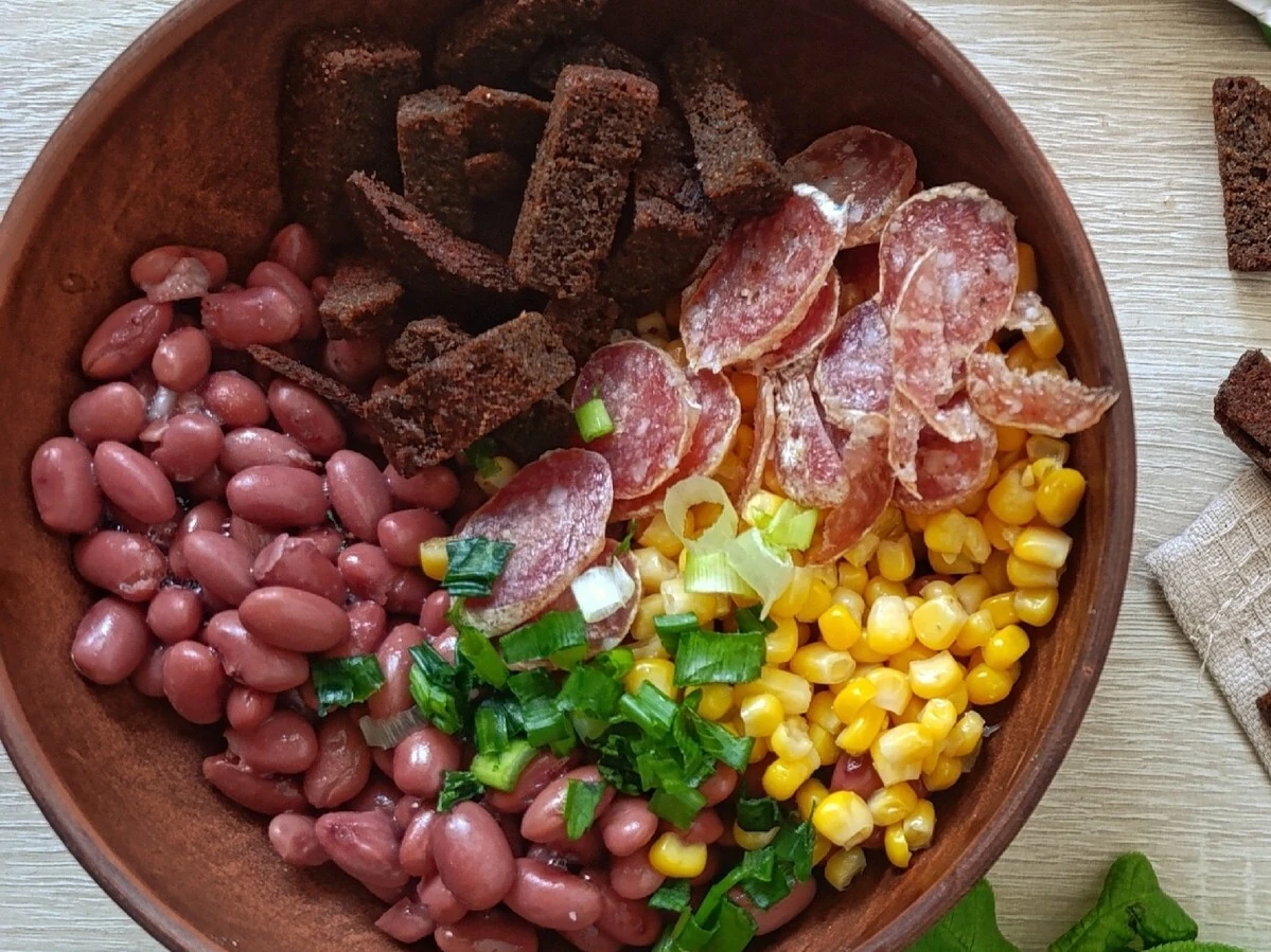 Рецепт «Салат для большой компании с фасолью и сухариками»