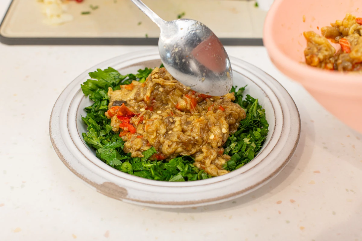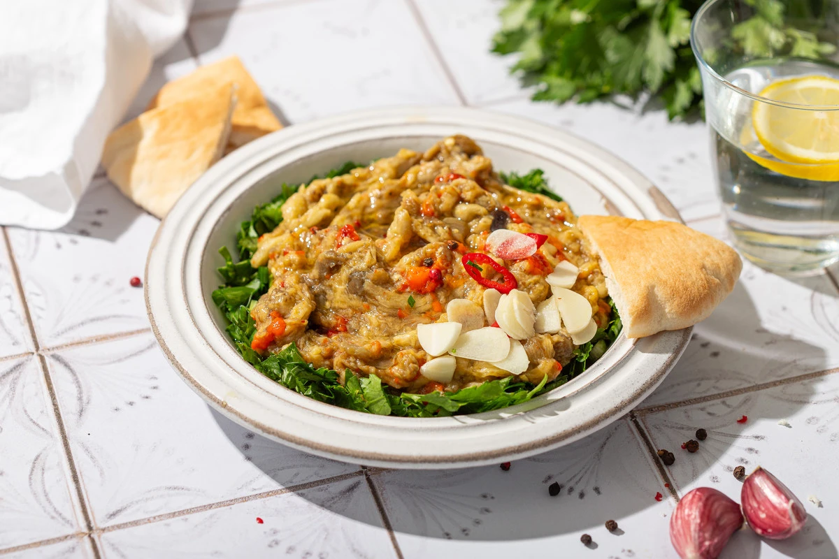 Мелидзонасалата — это ароматный салат-дип из печёных баклажанов. Овощи можно приготовить как на углях, так и в духовке.