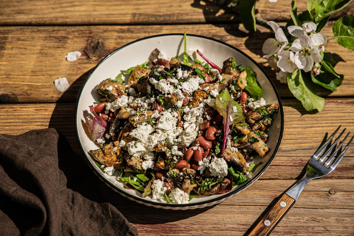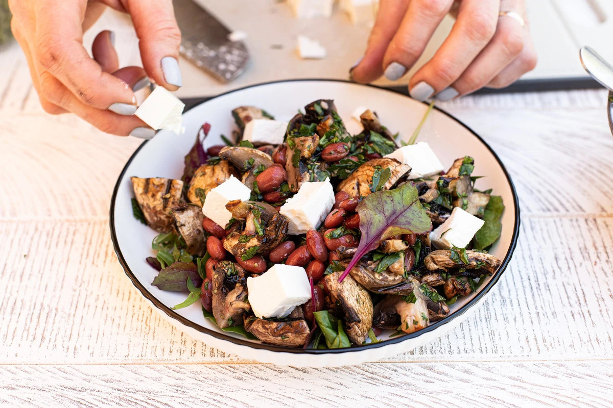 Салат из шампиньонов гриль с фетой и фасолью
