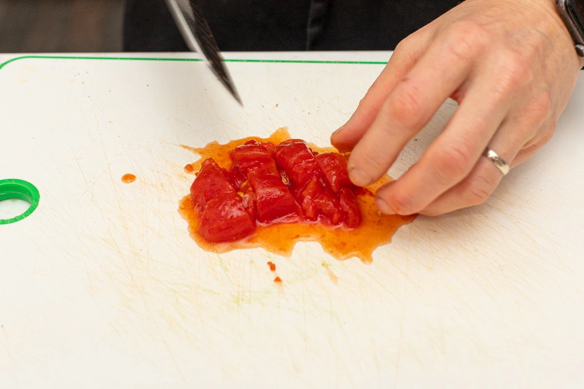 Томаты нарежьте кубиками.