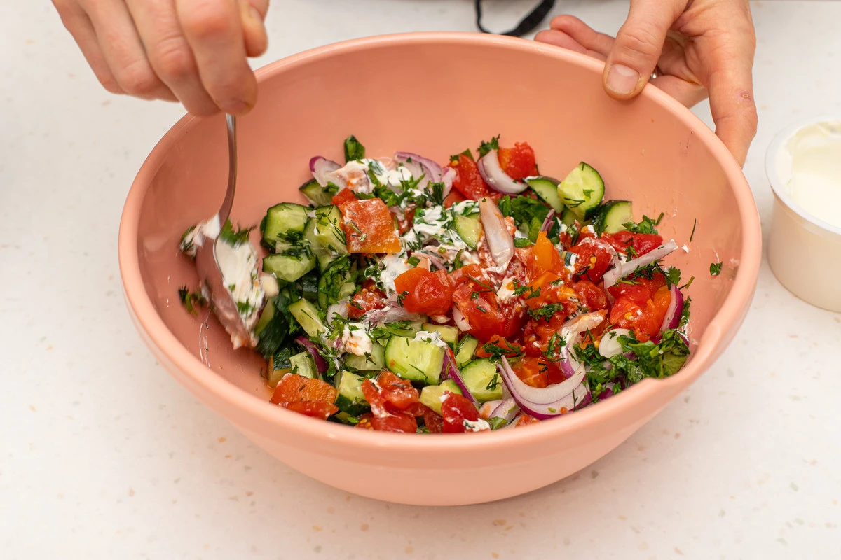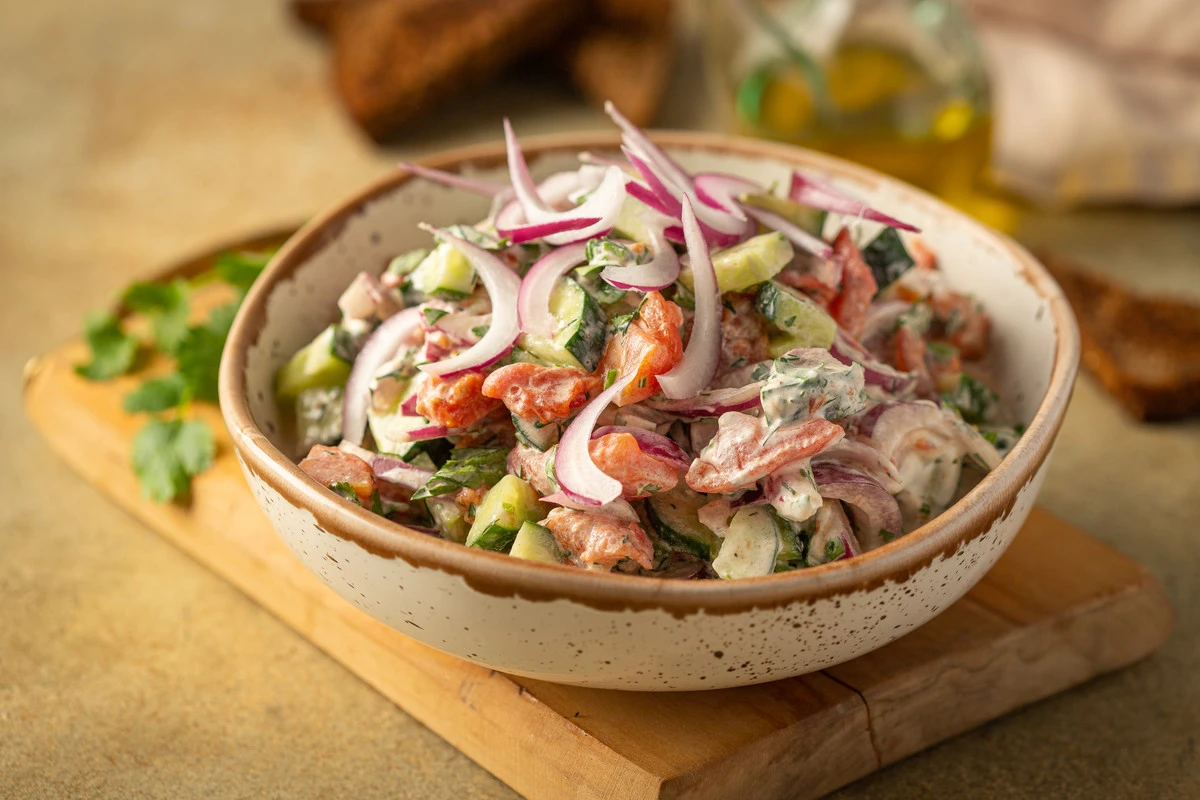 Салат «Литовский» из помидоров, огурцов и лука