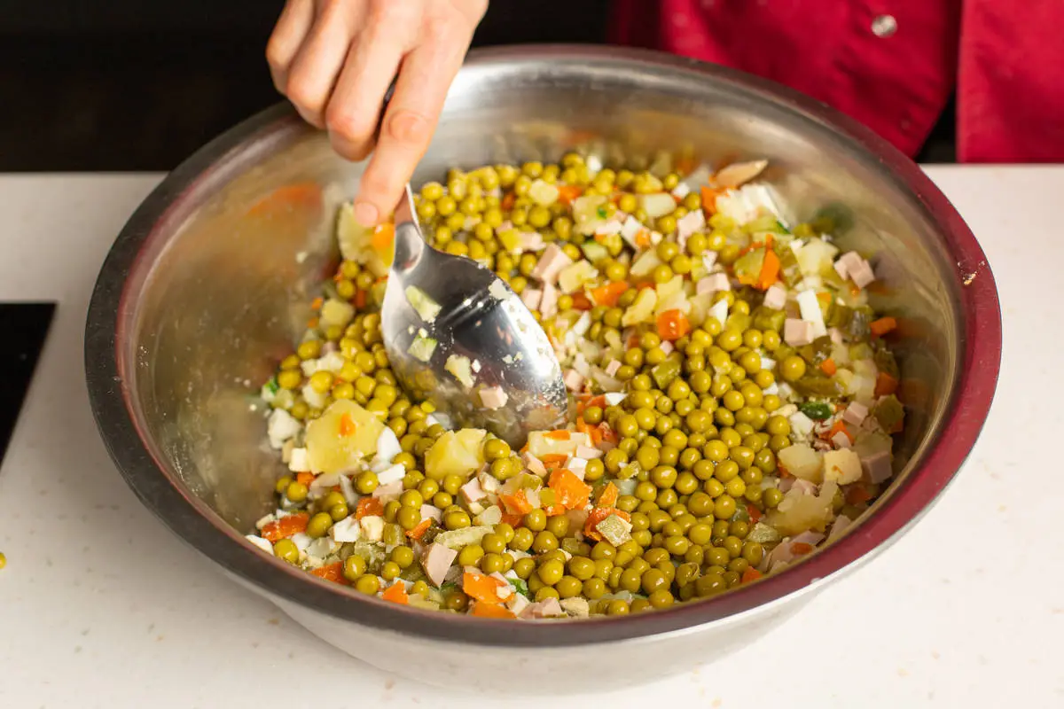 - вместо консервированного горошка положить бланшированный замороженный;