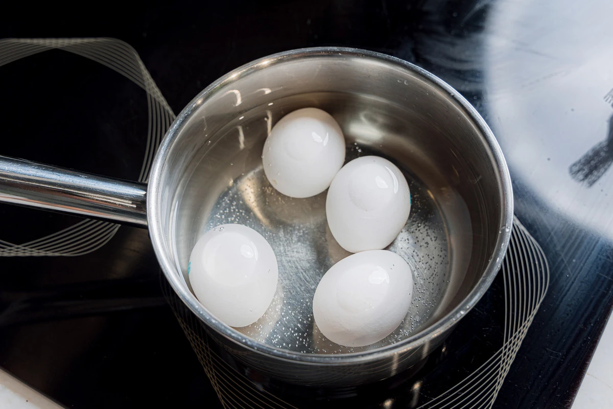 Яйца отварите вкрутую, остудите в холодной воде и почистите.