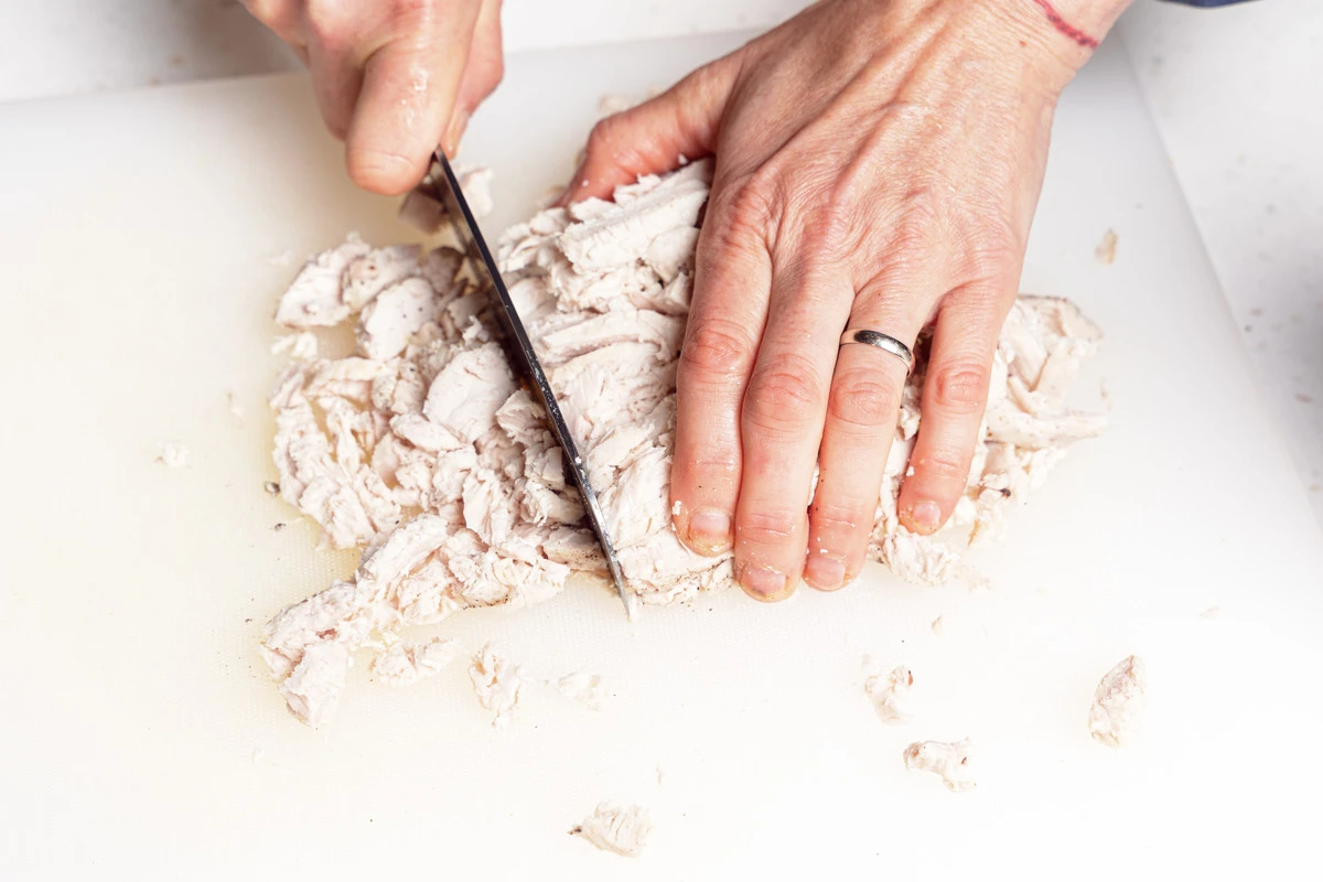 Курицу нарежьте кубиками такого же размера, как овощи.