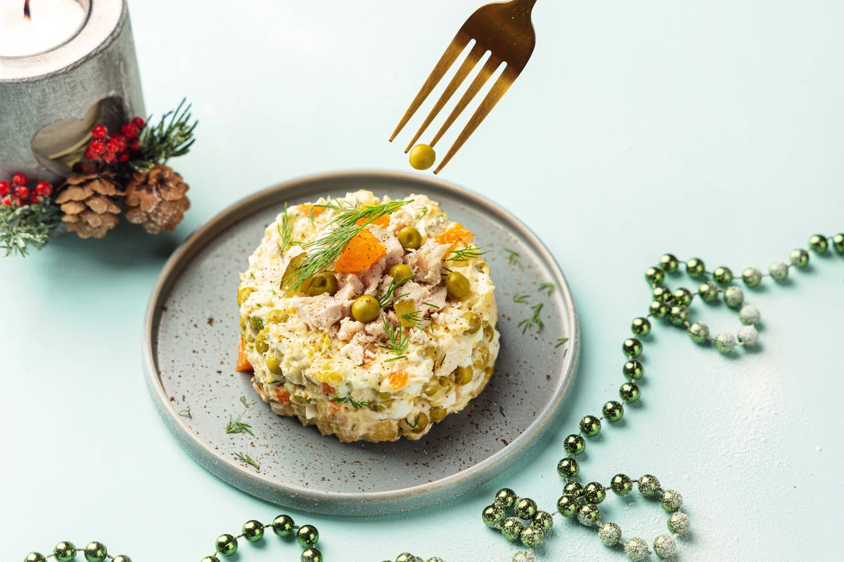 Оливье с курицей уже стал классикой праздничного стола. Такой салат чуть более лёгкий, чем аналог с говядиной или колбасой, при этом очень вкусный. Попробуйте не сварить овощи и куриное филе, а запечь, как это делаем мы — вкус будет ещё ярче и насыщеннее.