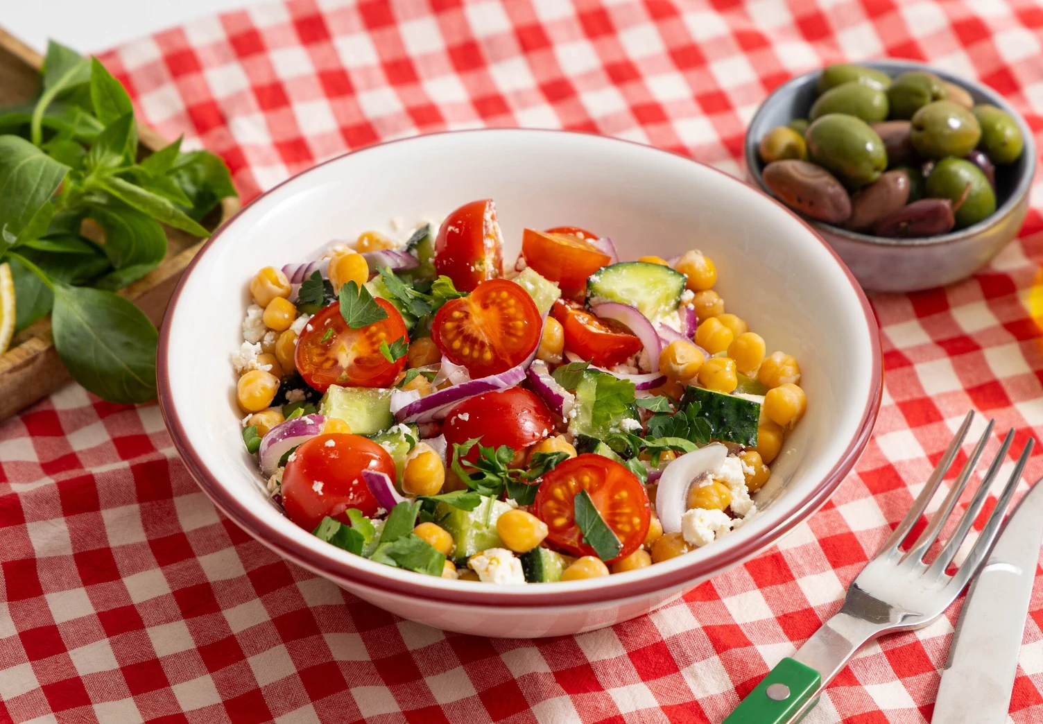 Салат с фетой и нутом