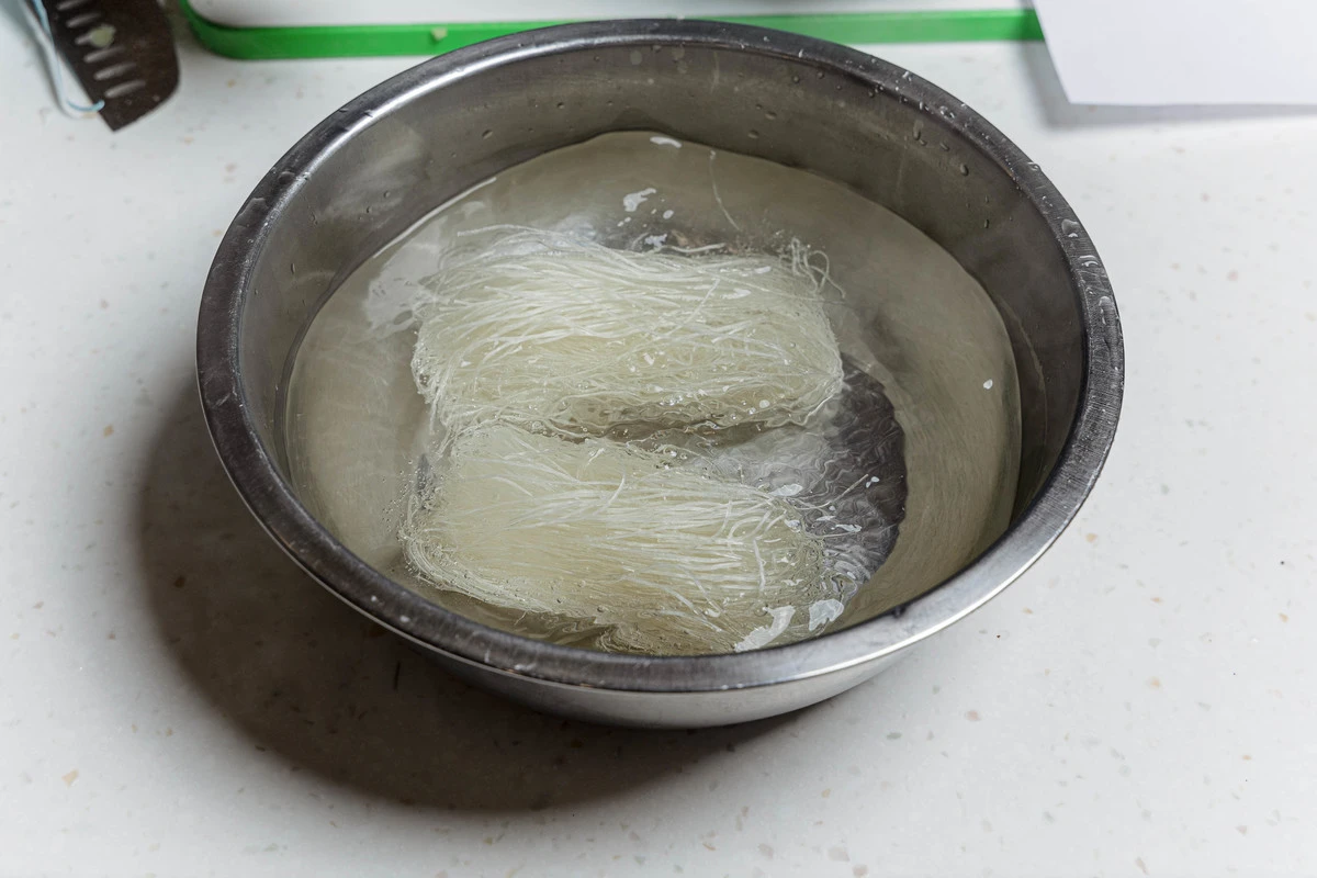 Фунчозу залейте кипятком и оставьте на 15 минут.