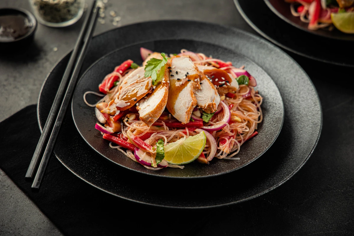 Рецепт «Салат с фунчозой, курицей и редькой»