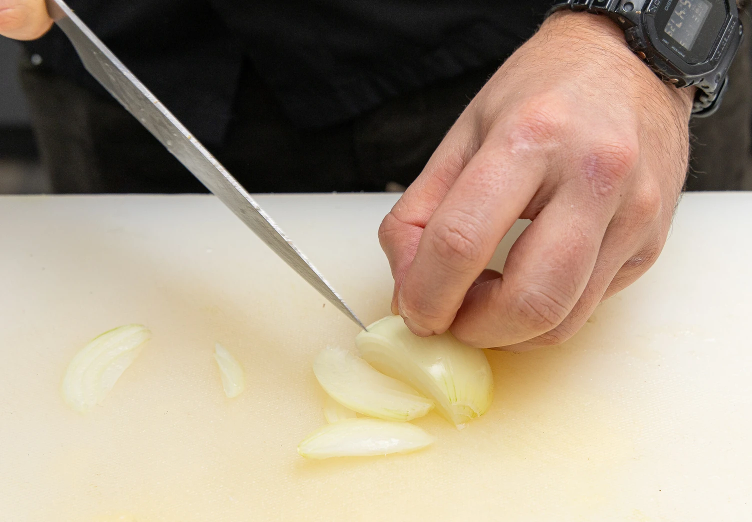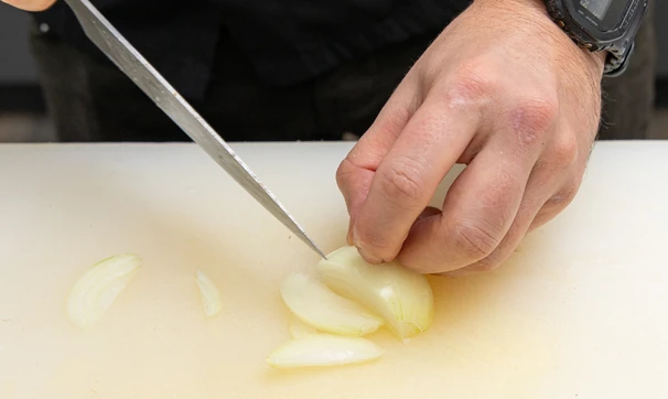 Лук нарежьте тонкими полукольцами.