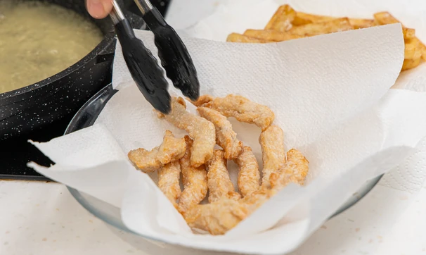 Затем выложите их на бумажные полотенца, чтобы удалить излишки масла.