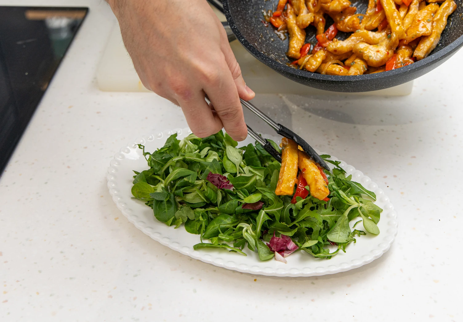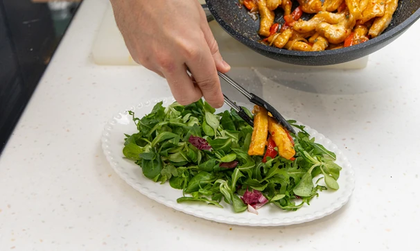 Наш бренд-шеф Кирилл Левин однажды попал на кухню к китайскому повару и привёз оттуда этот рецепт. Хрустящая курочка, сочные овощи и кисло-сладкий соус: если любите азиатскую кухню, то этот салат для вас!