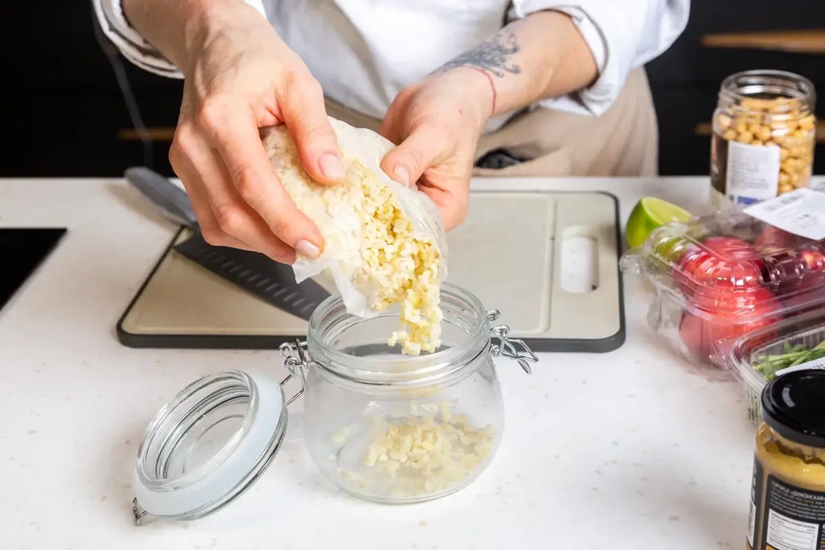 Смешайте горчицу, оливковое масло и сок лайма до однородности. Добавьте в каждую банку.