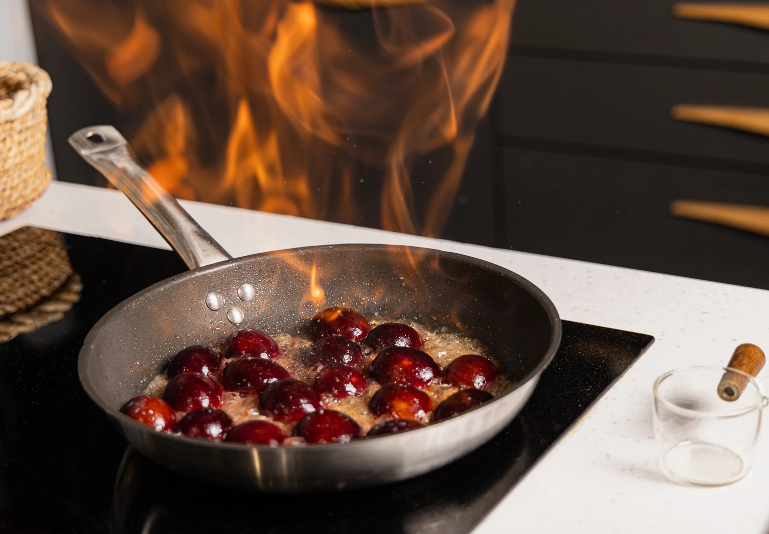 По желанию плоды можно фламбировать: влейте в сковороду крепкий алкоголь и сразу же подожгите.