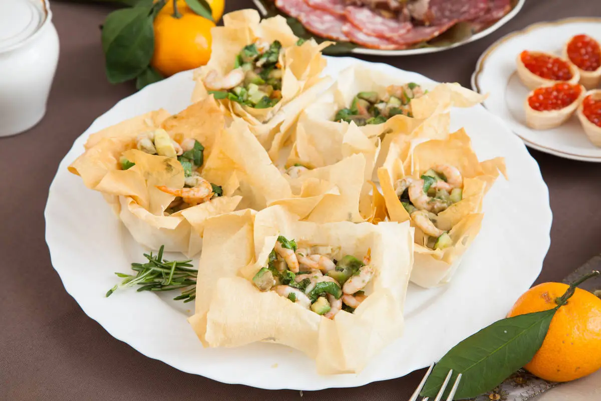 Тарталетки из фило хорошо держат форму, не перегружают блюдо и приятно хрустят, а еще их можно испечь заранее!