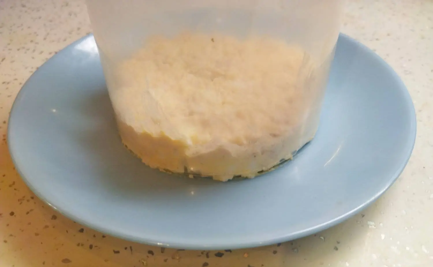 Мне захотелось выложить салат слоями (можете воспользоваться кулинарным кольцом). На нижний слой выкладываем массу из курицы, яйца и майонезной заправки. Немного прижимаем. Сверху посыпаем тёртым сыром.