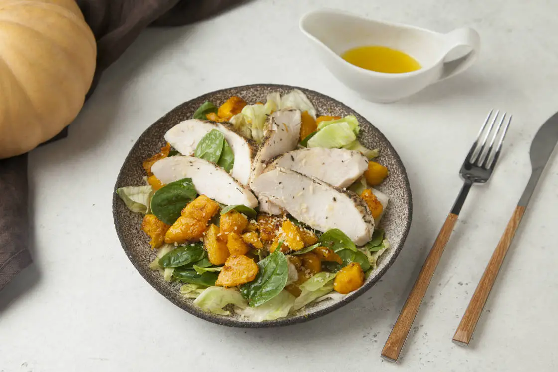 Салат с печёной тыквой и куриным филе