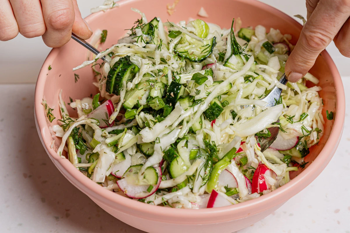 Рецепт «Салат с редисом, молодой капустой и огурцом»