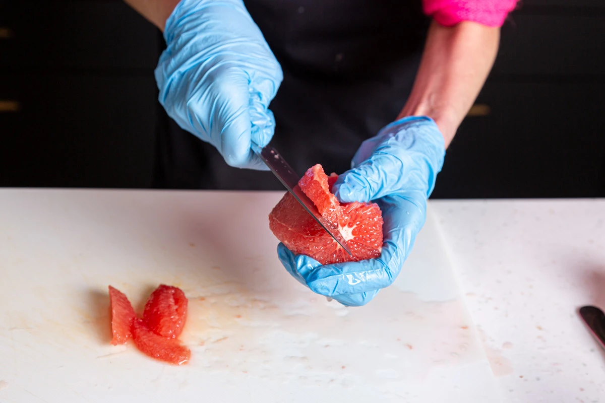 Очищенный грейпфрут разберите на сегменты без кожицы.
