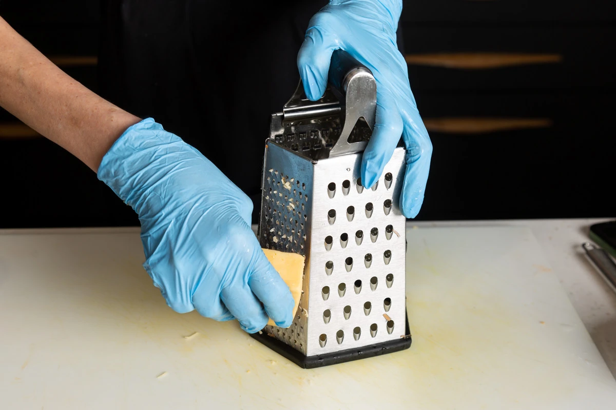 Натрите сыр. Можно использовать крупную или мелкую тёрку.