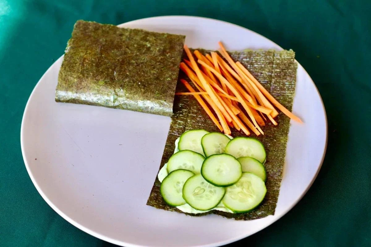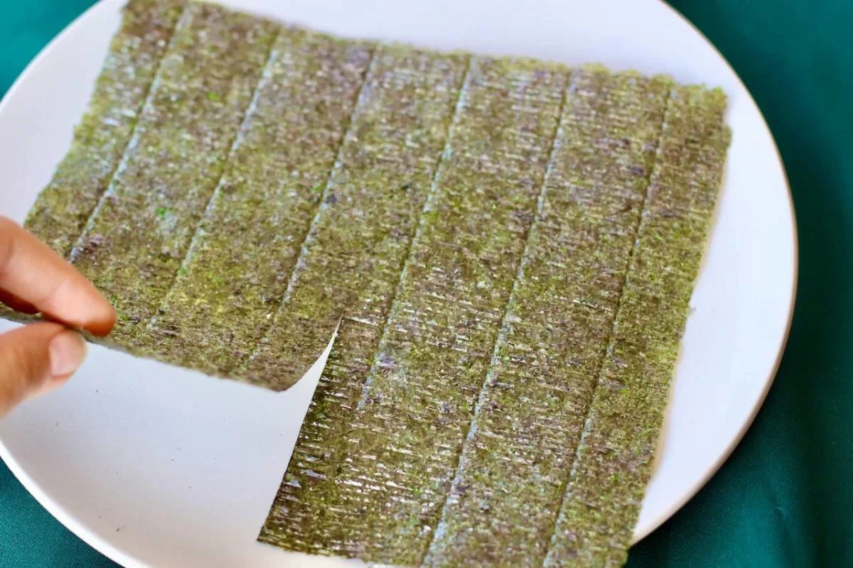 Сделайте надрез на листе нори.