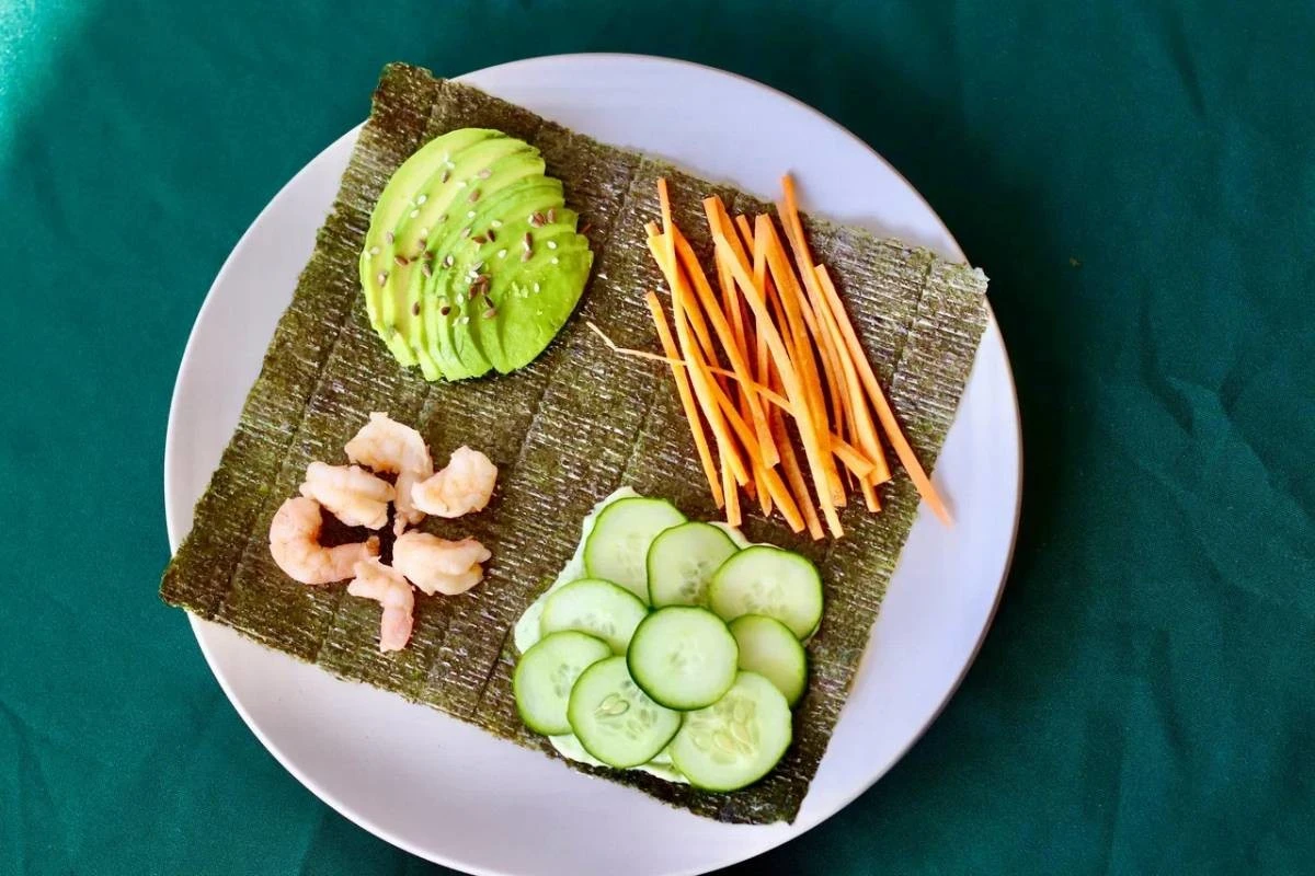 Сэндвич из нори, креветок и авокадо