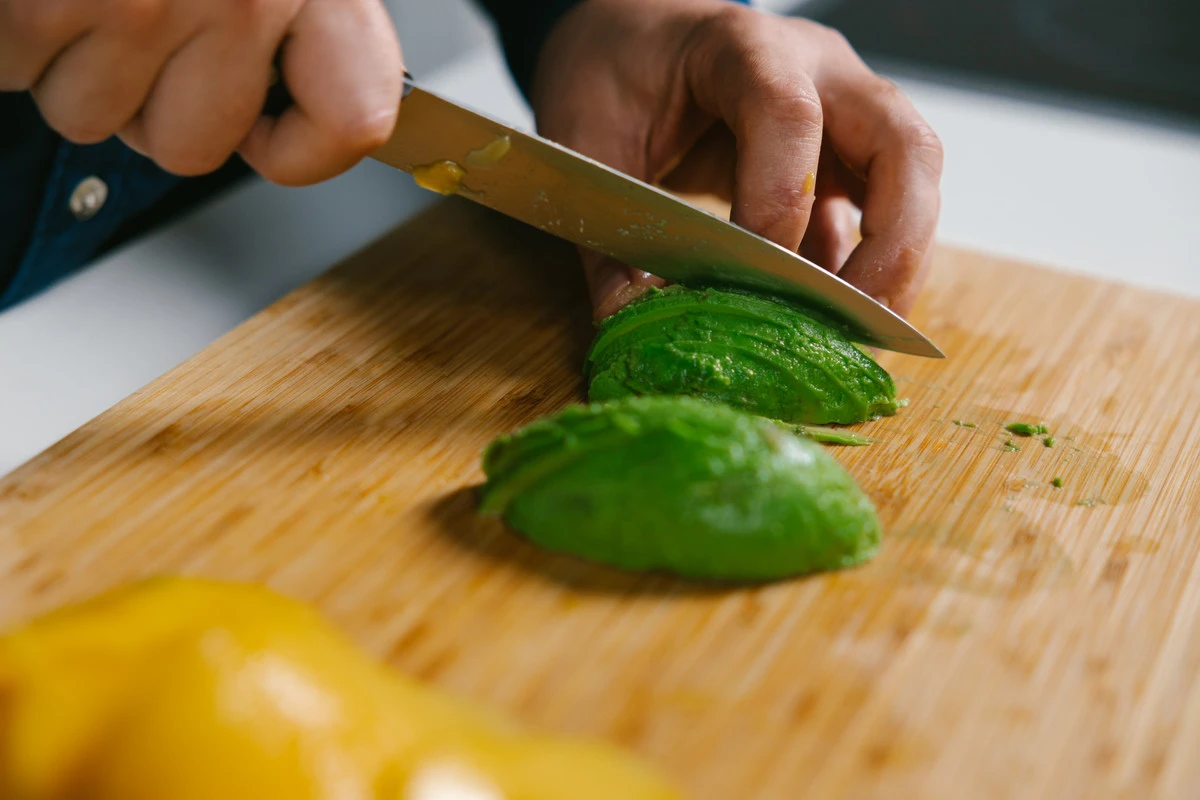 Манго очистите от кожуры и нарежьте на не слишком крупные кубики, так же поступите с авокадо и куриной грудкой.