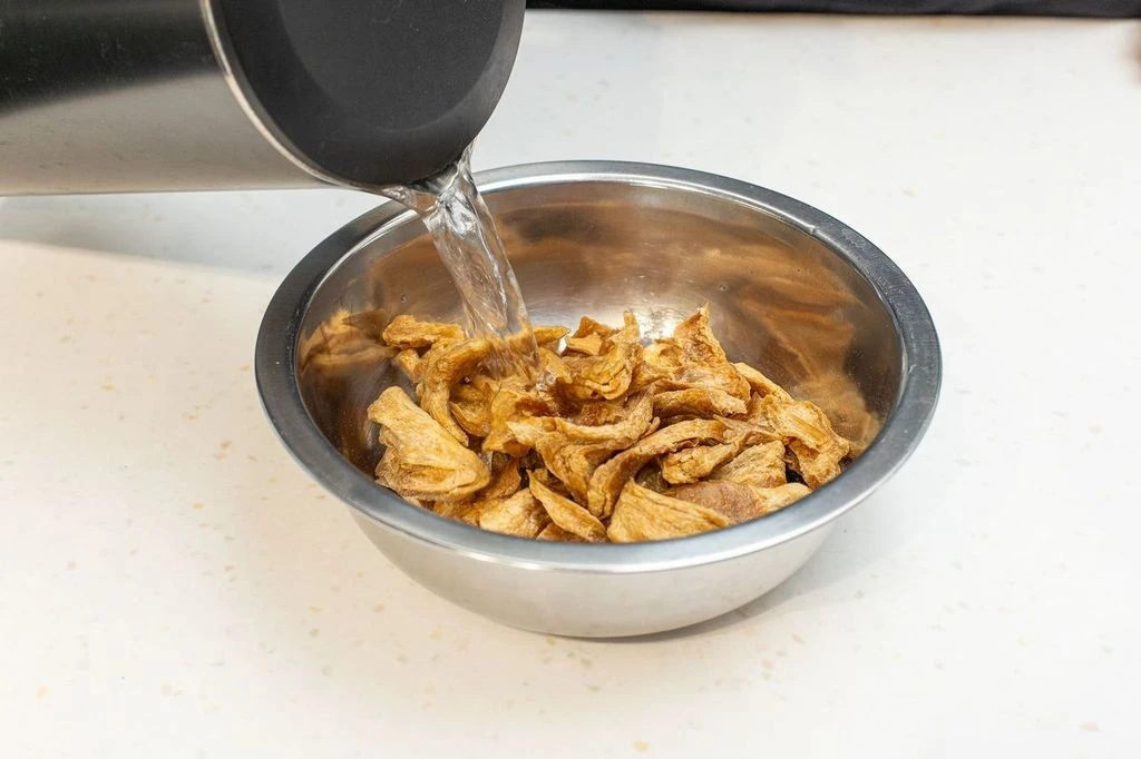 Белок залейте кипятком и оставьте минимум на 30 минут.