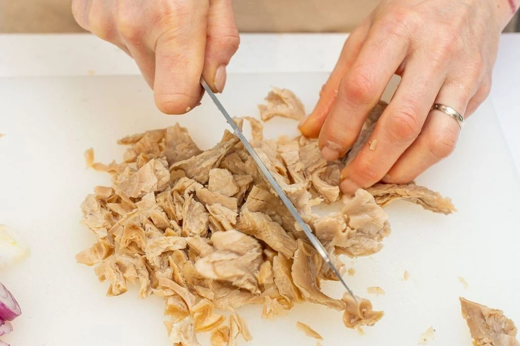 Когда белок достаточно размягчится, нарежьте его кусочками среднего размера.