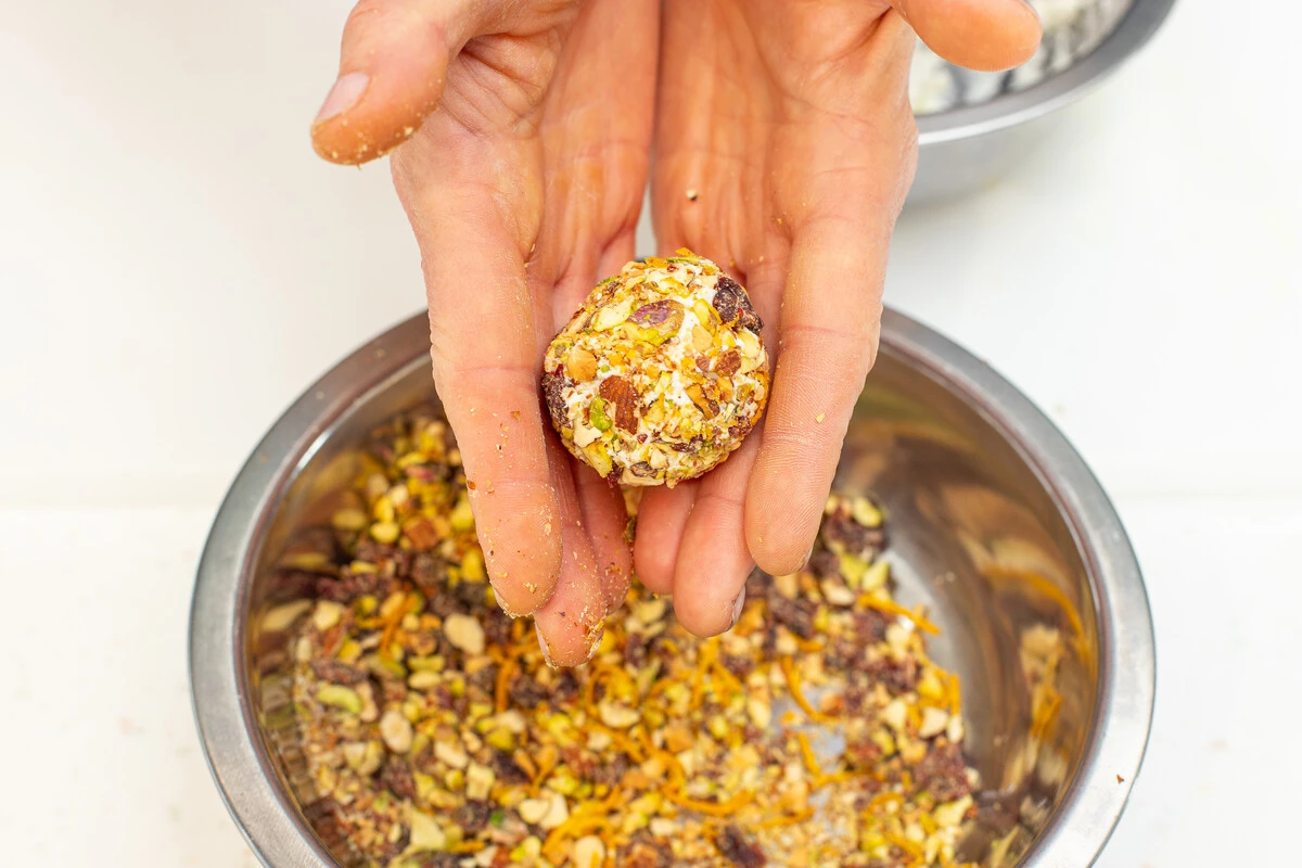 Шарики из козьего сыра в обсыпке из орехов и сухофруктов