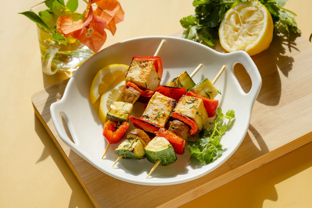 Вариант шашлычков для веганов или вегетарианцев, а также тех, кто решил отдохнуть от мяса и приготовить что-нибудь быстрое и вкусное.