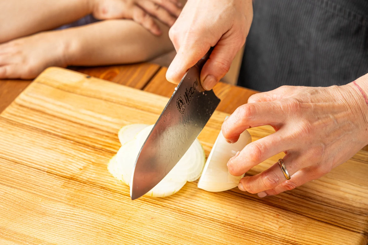 Головку чеснока разрежьте пополам и половину положите в шашлык.