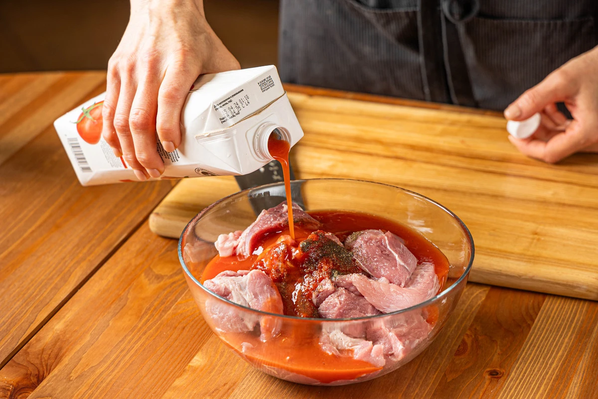 Налейте томатный сок.