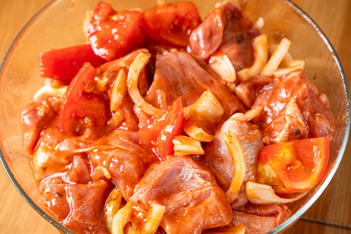 Шашлык из свиной шеи в томатном маринаде