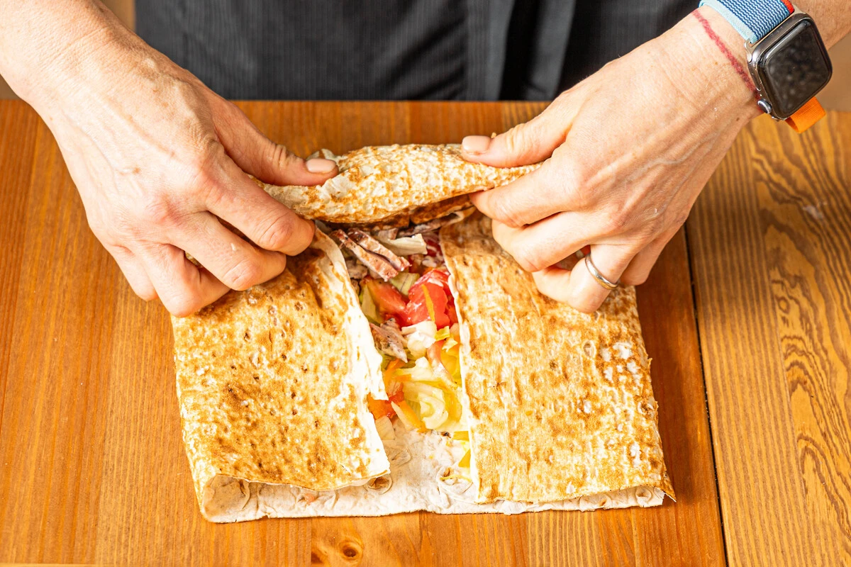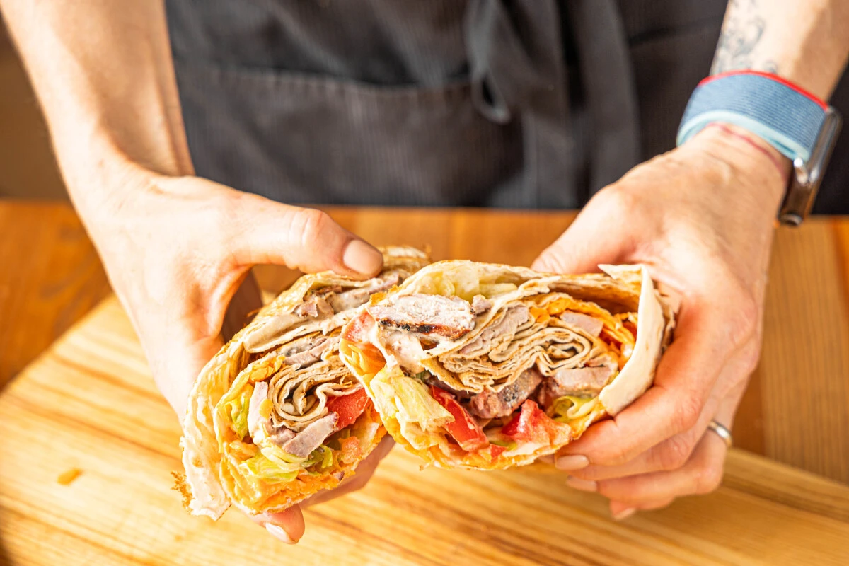 Наверняка вам знакома ситуация, когда после застолья с шашлыком остаётся немного мяса, немного этих овощей, немного тех… Что с этим делать? Шаурму! Можно использовать разные ингредиенты, оставшиеся после вечеринки, или те, что есть в холодильнике. В любом случае получится сытное и вкусное блюдо. В этом рецепте предлагаем сочетание, которое понравилось нам.