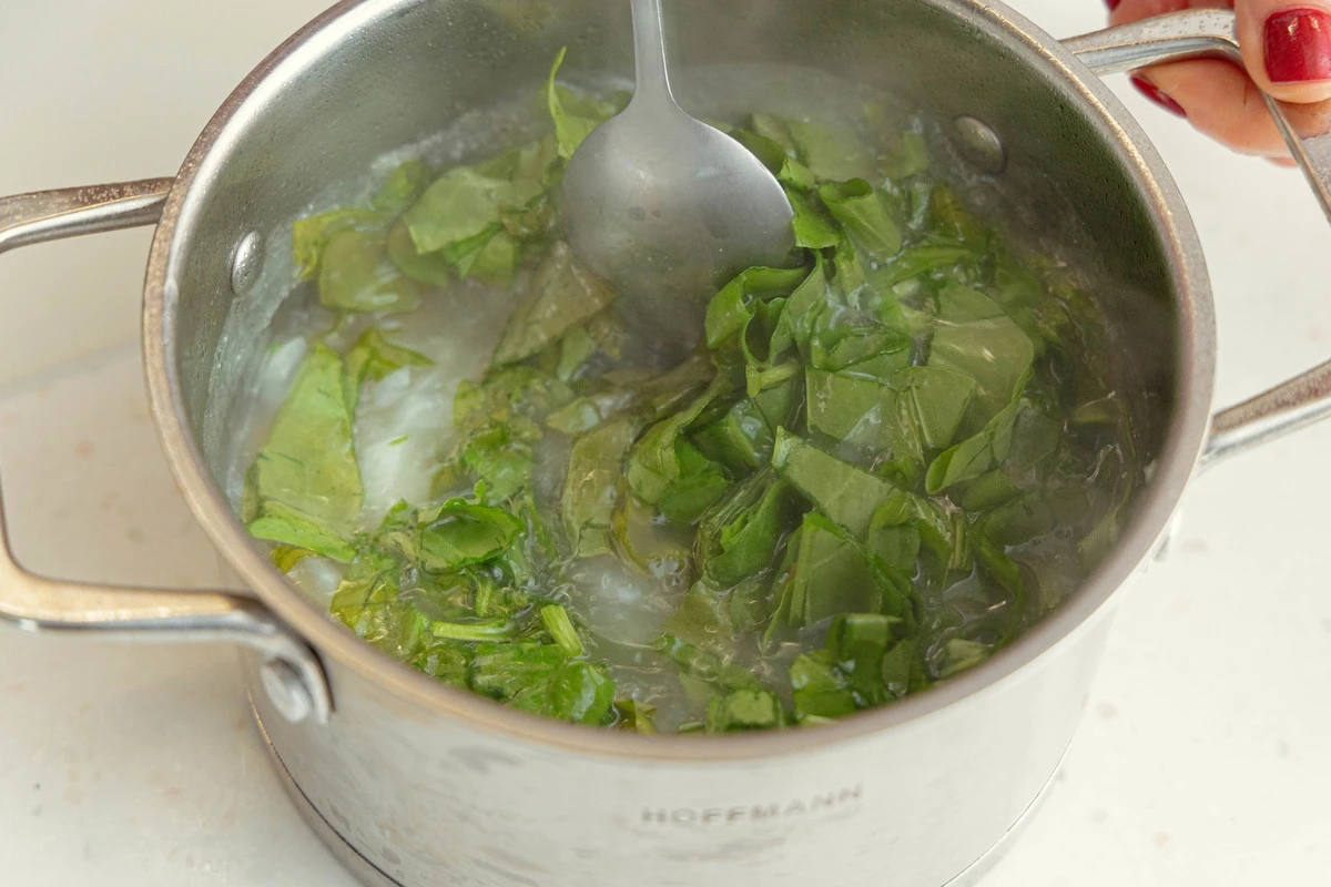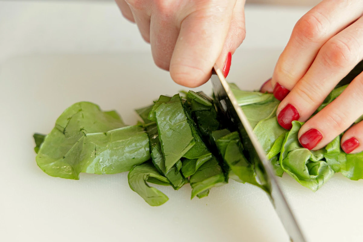 Порежьте щавель.