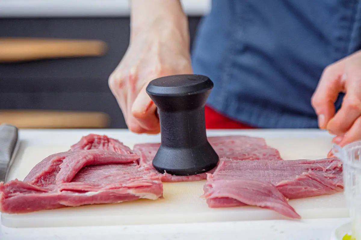 Тщательно отбейте. Для этого рецепта можно также использовать свиную корейку, такие рулеты получатся крупнее.