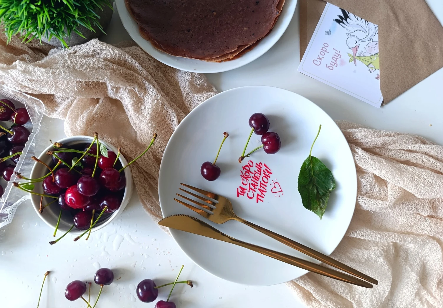 Шоколадные блины с вишней и кремом «Письмо счастья»