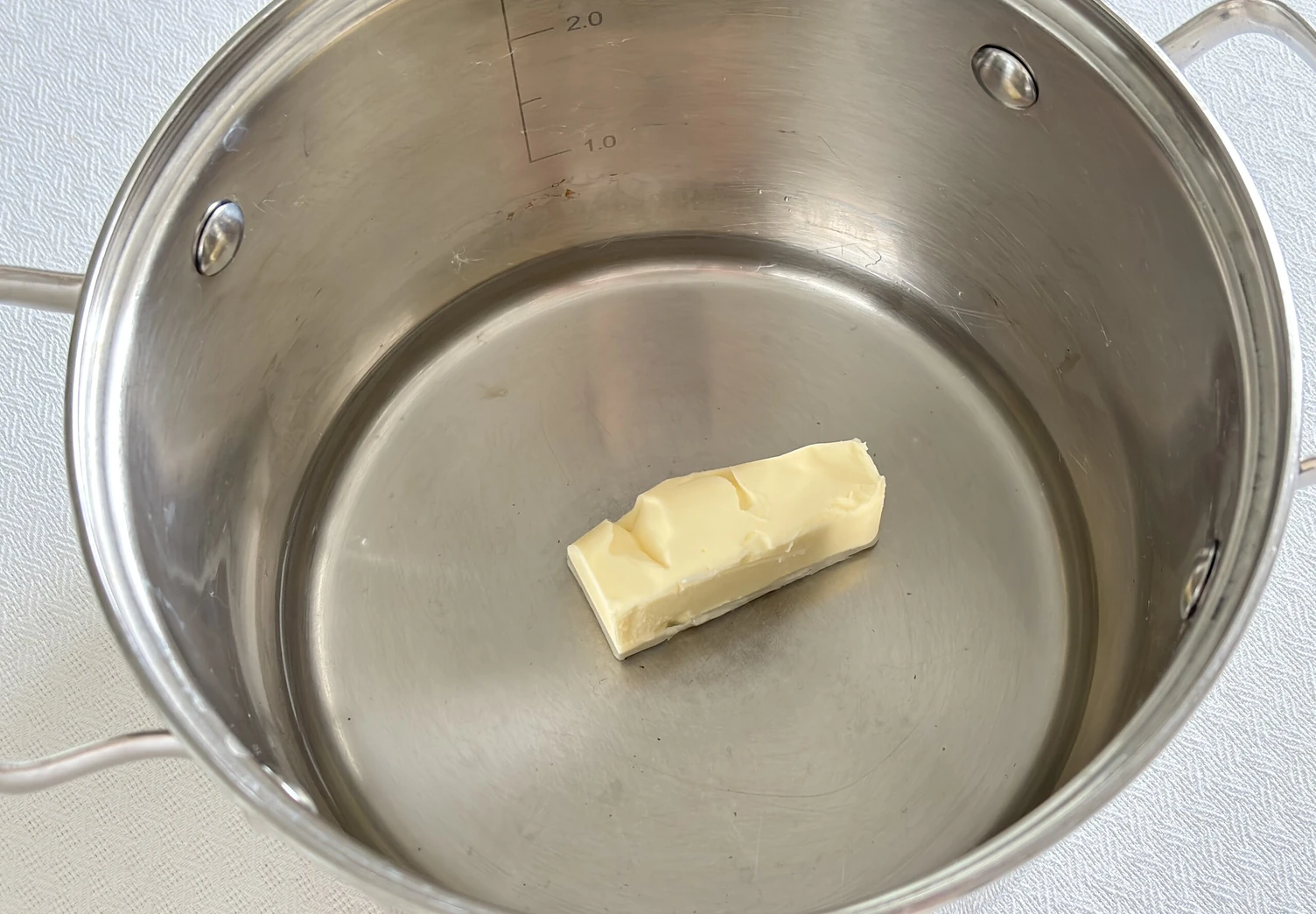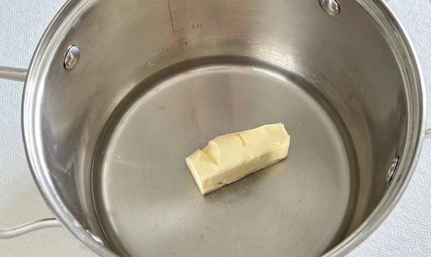 Влейте воду в сотейник, добавьте соль и сливочное масло. Поставьте сотейник на средний огонь и постоянно мешайте.