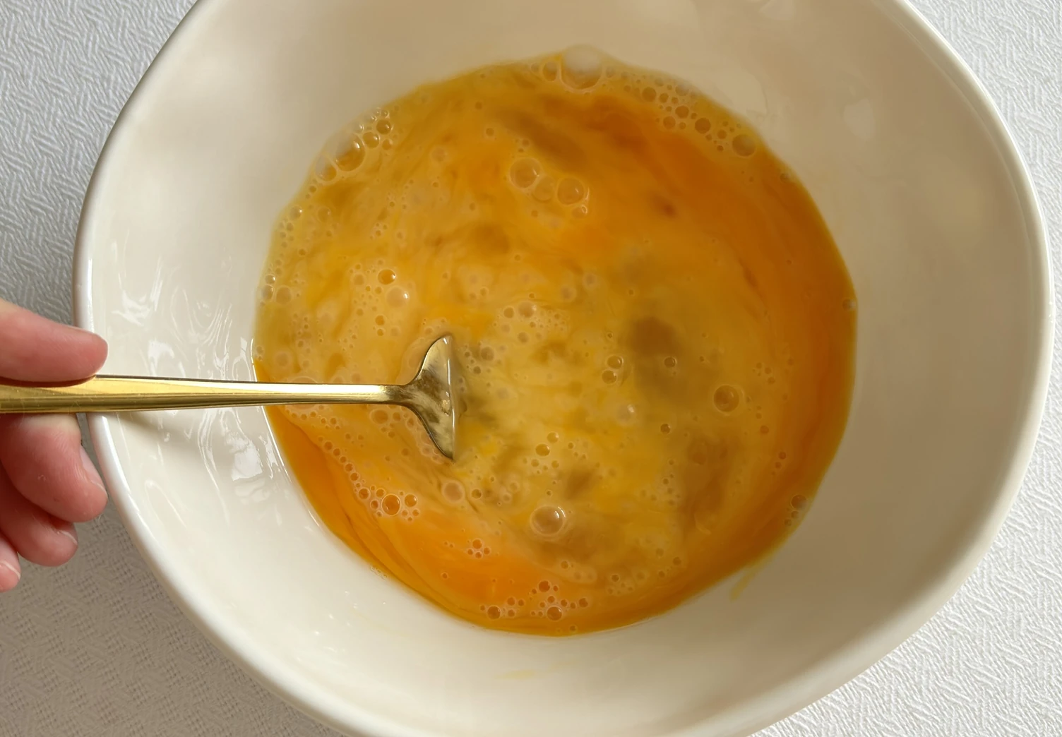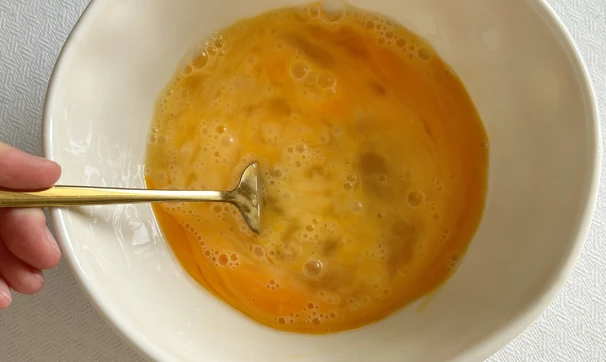 В отдельную ёмкость разбейте яйца и перемешайте их вилкой.