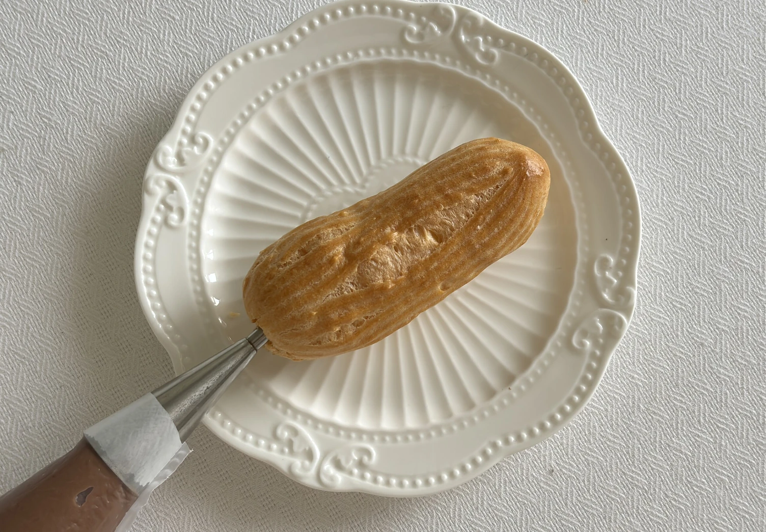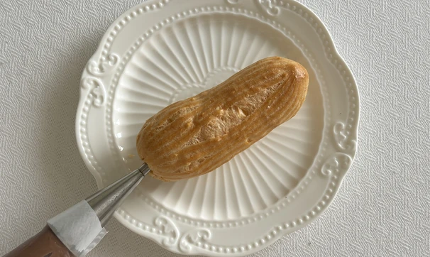 Начините приготовленные эклеры кремом с помощью специальной насадки.