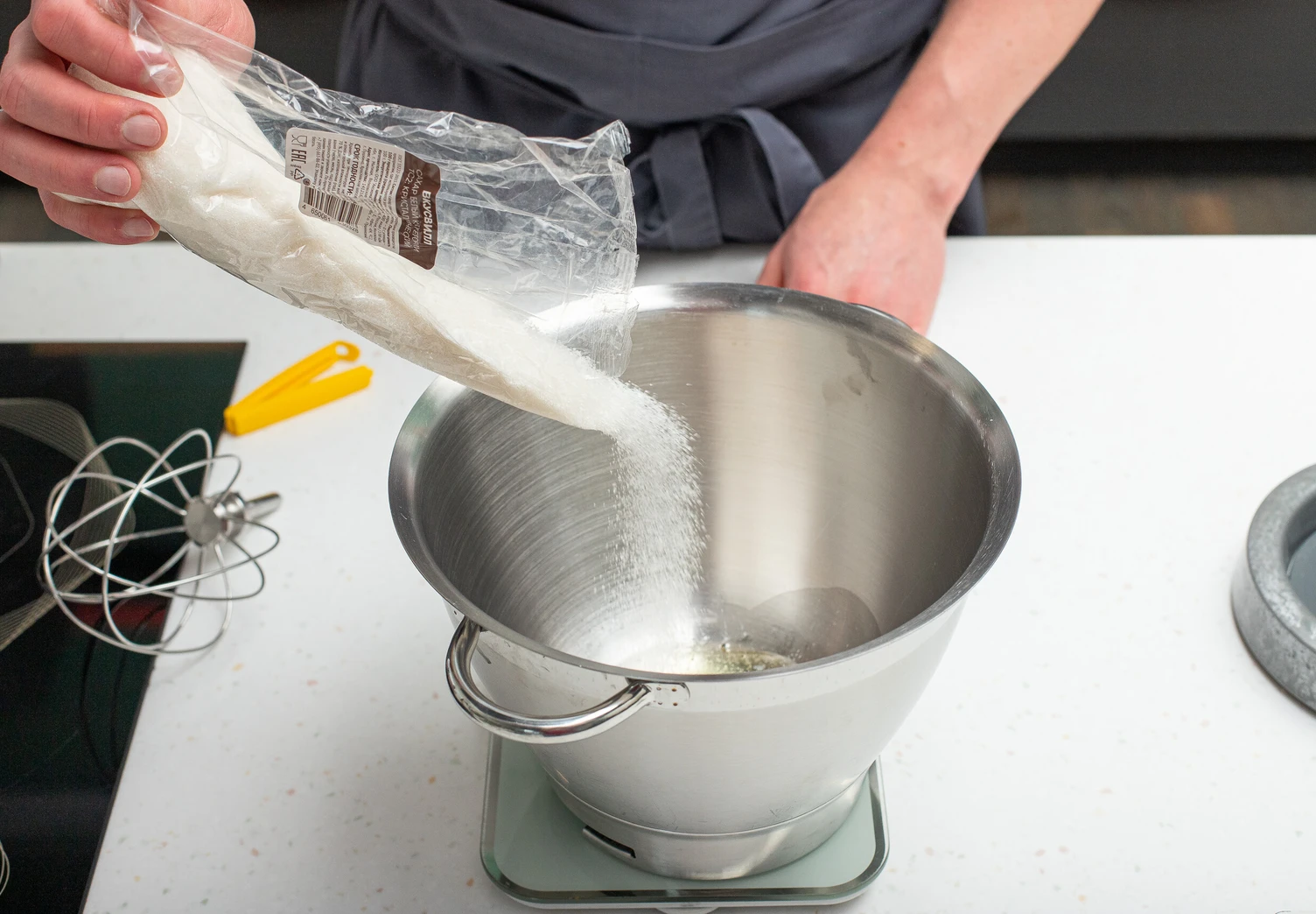 Приготовьте мох. Для этого взбейте яйцо до пышности с сахаром и мёдом.