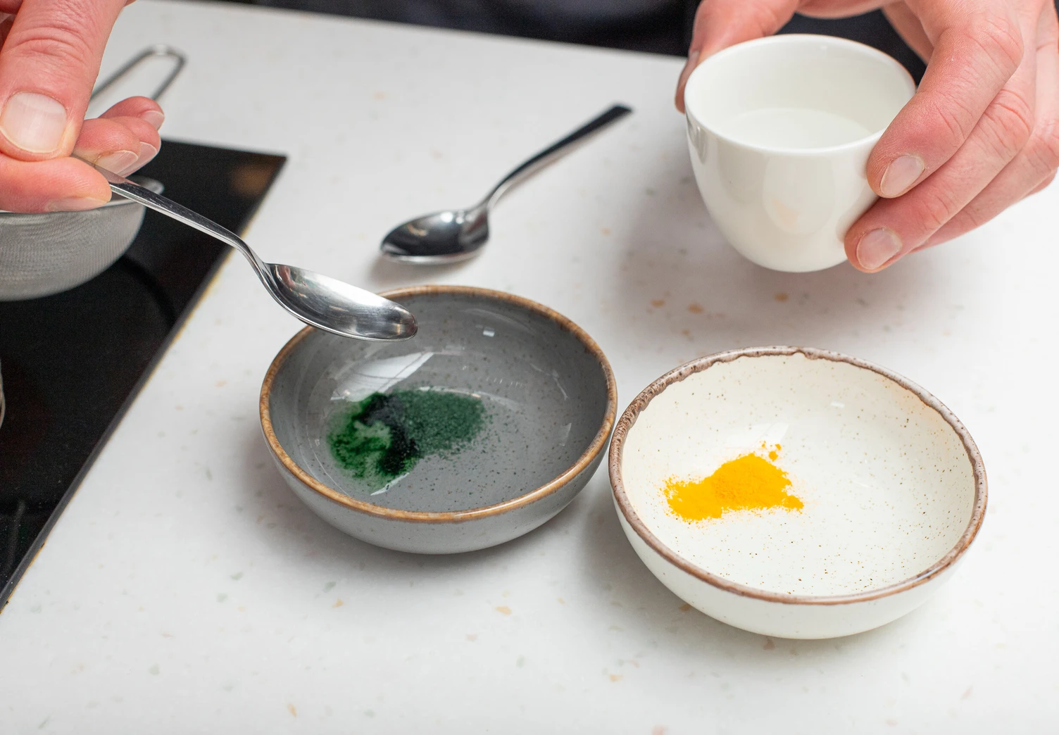 Сухие красители смешайте с небольшим количеством воды и добавьте к остальным ингредиентам.